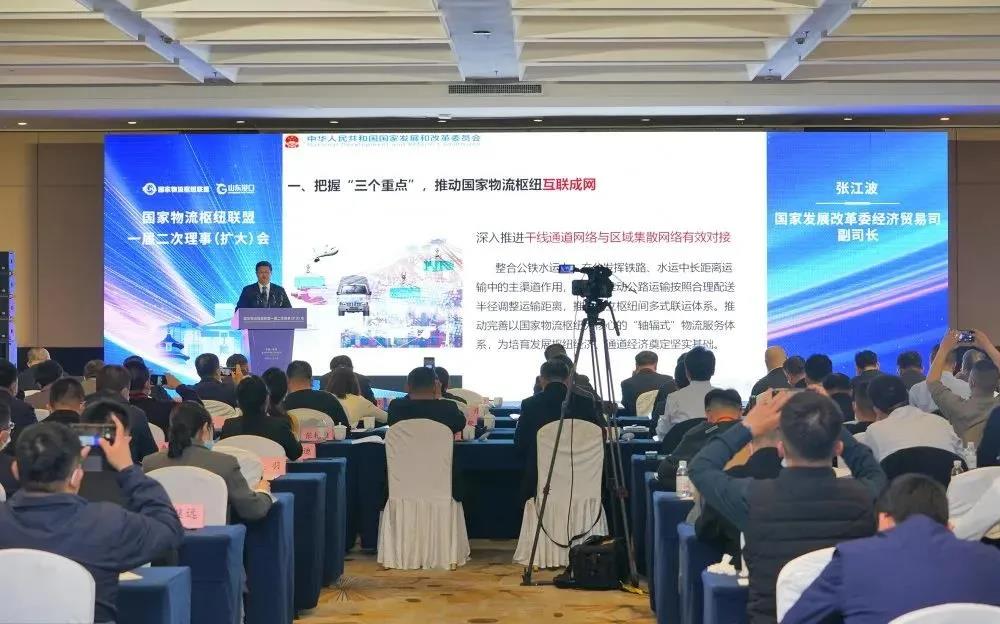 3月25日下午,由中國物流與采購聯(lián)合會、山東省港口集團(tuán)聯(lián)合主辦的國家物流樞紐聯(lián)盟一屆二次理事(擴(kuò)大)會暨現(xiàn)代物流體系建設(shè)工作會在青島召開。國家發(fā)展和改革委員會經(jīng)濟(jì)貿(mào)易司副司長張江波,國家物流樞紐聯(lián)盟常務(wù)副理事長、中國物流與采購聯(lián)合會副會長賀登才,山東省港口集團(tuán)有限公司黨委書記、董事長霍高原講話。國家物流樞紐聯(lián)盟常務(wù)副理事長、中國物流與采購聯(lián)合會副會長賀登才,北京交通大學(xué)交通運(yùn)輸學(xué)院教授、中物聯(lián)物流園區(qū)專委會專家委員會副主任張曉東,中國物資儲運(yùn)協(xié)會名譽(yù)會長、中物聯(lián)物流園區(qū)專委會專家委員會主任姜超峰主持會議。山東順和商貿(mào)集團(tuán)有限公司董事長、山東順和物聯(lián)科技有限公司董事長趙玉璽帶領(lǐng)山東順和物聯(lián)科技有限公司管理團(tuán)隊(duì)參加會議。