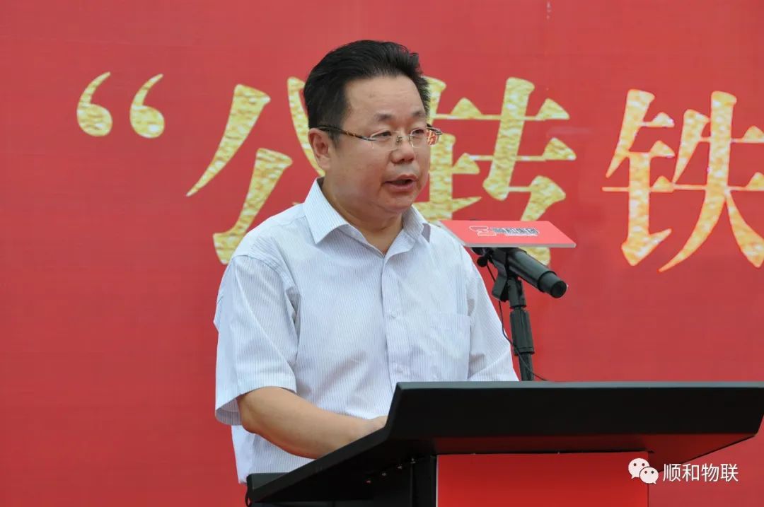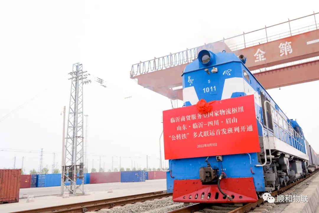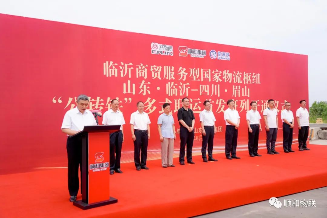 8月9日上午,由山東順和集團(tuán)主辦,山東順和物聯(lián)科技有限公司及事業(yè)合伙人山東臨滿歐國際物流有限公司、山東順和國際物流有限公司、臨沂濟(jì)鐵物流園協(xié)辦的“臨沂商貿(mào)服務(wù)型國家物流樞紐(山東·臨沂—四川·眉山)‘公轉(zhuǎn)鐵’多式聯(lián)運(yùn)首發(fā)班列開通儀式”順利舉行。中國鐵路濟(jì)南局集團(tuán)有限公司貨運(yùn)部主任劉洪青,臨沂市人大常委會副主任劉飛,臨沂商城黨工委書記、管委會主任王景美,臨沂市重點(diǎn)建設(shè)項目服務(wù)中心主任徐寶宏,臨沂市交通局道路運(yùn)輸服務(wù)中心黨委成員、副主任張樹峰,臨沂市鐵路民航事業(yè)發(fā)展中心黨組成員、副主任朱孔嚴(yán),臨沂車務(wù)段段長張鈺國,臨沂車務(wù)段副段長劉玉方,蘭山區(qū)政府副區(qū)長、商城黨組副書記、管委會副主任田宗春,濟(jì)南鐵路局濟(jì)鐵物流園總經(jīng)理陳偉,蘭山經(jīng)濟(jì)開發(fā)區(qū)管委會副主任鄭峰,蘭山區(qū)交通局局長董建梅,蘭山區(qū)發(fā)改局副主任朱雪松,山東順和集團(tuán)黨委書記趙玉璽,山東臨滿歐國際物流有限公司總經(jīng)理咸友濤及順和集團(tuán)各企業(yè)、部門人員出席儀式,儀式由順和集團(tuán)董事長許大勇主持。