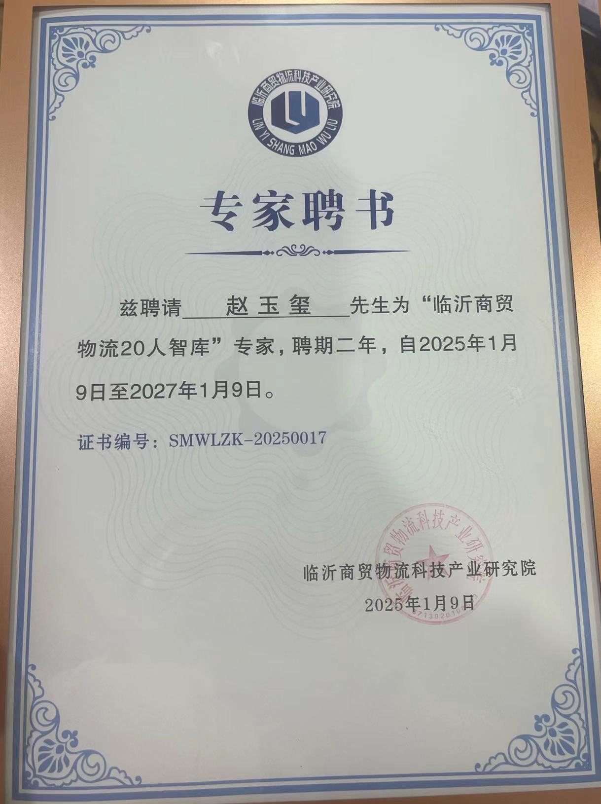 會(huì)上,集團(tuán)黨委書記趙玉璽、商貿(mào)物流研究院順和分院院長(zhǎng)曹松榮被聘請(qǐng)為“臨沂商貿(mào)物流20人智庫(kù)”專家,聘期二年。