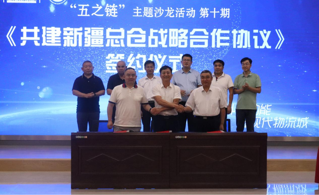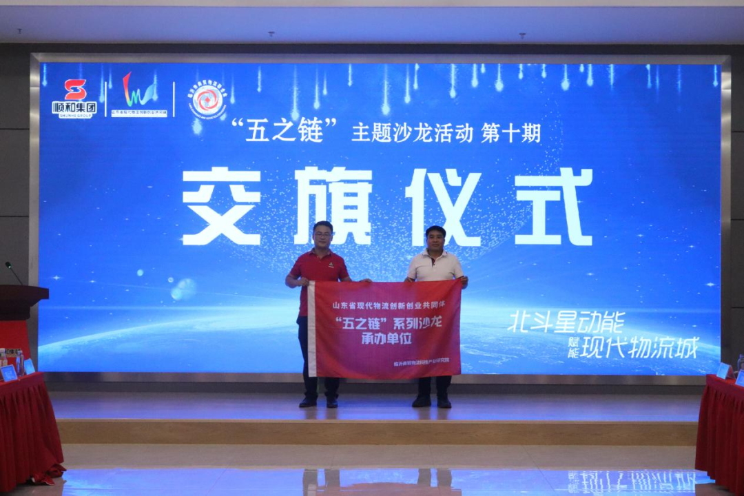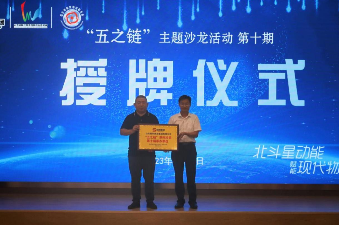 2023年8月25日下午,由臨沂市商貿(mào)物流科技產(chǎn)業(yè)研究院主辦,山東順和商貿(mào)集團有限公司、臨沂市商貿(mào)物流聯(lián)合會承辦的《第十期“五之鏈”物流主題沙龍——應(yīng)用示范北斗星動能 數(shù)字賦能現(xiàn)代物流城》活動在臨沂商貿(mào)服務(wù)型國家物流樞紐山東順和國際智慧物流園成功舉行。新疆巴州恒立供銷合作社副主任、二級調(diào)研員劉成軍,蘭山商城管委會國際陸港建設(shè)服務(wù)中心主任杜慶明,臨沂商城管委會規(guī)劃服務(wù)科科長彭飛,臨沂商貿(mào)物流科技產(chǎn)業(yè)研究院院長張家瑋,集團黨委副書記、董事長許大勇,集團董事、副總經(jīng)理李邦,新疆絲路九鼎梨城農(nóng)產(chǎn)品經(jīng)營管理公司董事長買買提江.吐爾地,山東連勝體育產(chǎn)業(yè)有限公司董事長宋連勝,臨沂商貿(mào)物流科技產(chǎn)業(yè)研究院副院長高元磊等企業(yè)和臨沂市商貿(mào)物流聯(lián)合會代表參與了此次沙龍活動。