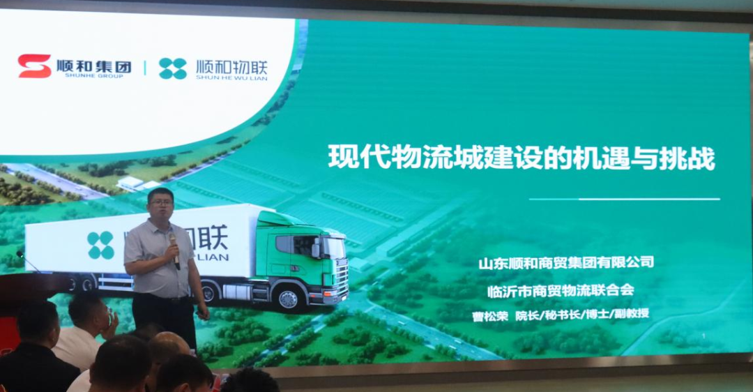 山東商貿(mào)物流產(chǎn)業(yè)研究院順和分院院長曹松榮介紹《現(xiàn)代物流城建設(shè)的機遇與挑戰(zhàn)》并提出了商貿(mào)與物流融合發(fā)展,“共同配送+集約分撥+倉配一體”的發(fā)展模式,用科技平臺賦能臨沂專線物流發(fā)展的觀點,促進存量升級、增量拓展、產(chǎn)業(yè)融合、多元發(fā)展,共同推動臨沂商貿(mào)物流的未來更加美好!
