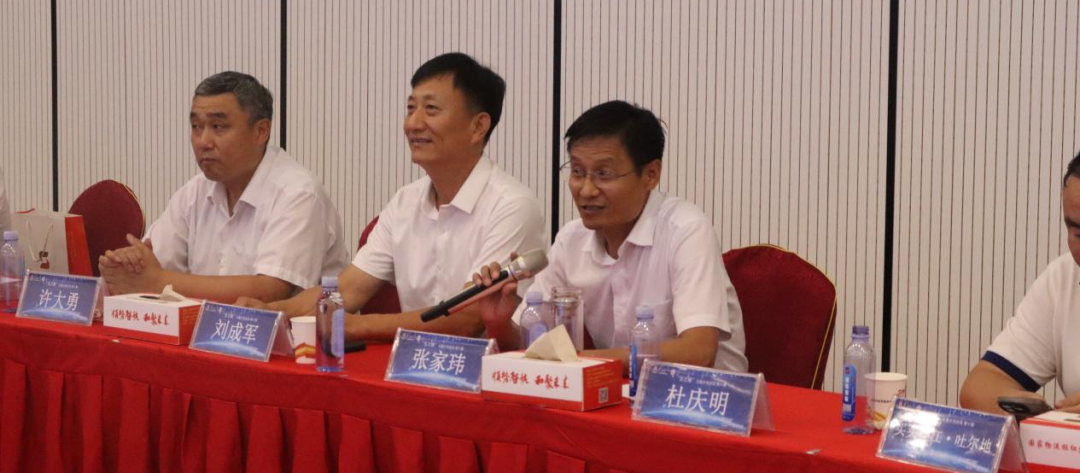 集團黨委副書記、董事長許大勇與新疆巴音郭楞蒙古自治州供銷合作社聯(lián)合社副主任劉成軍,新疆絲路九鼎梨城農(nóng)產(chǎn)品經(jīng)營管理有限公司董事長買買提江簽署《共建新疆總倉戰(zhàn)略合作協(xié)議》。