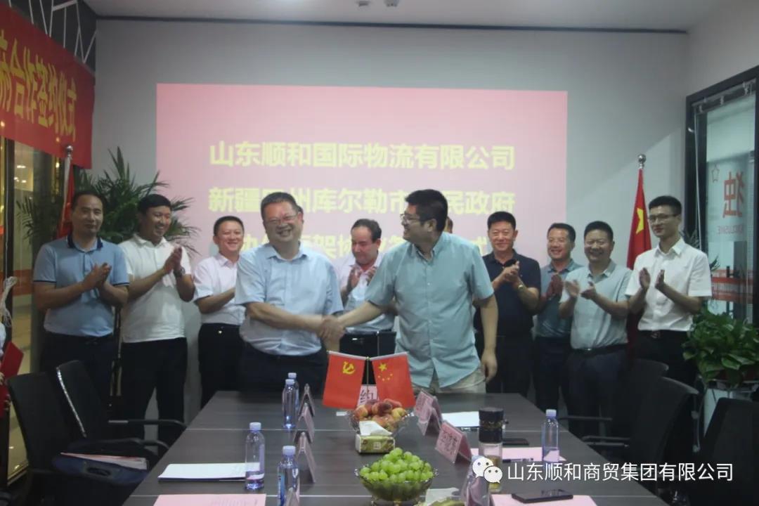 近日,山東順和國際物流有限公司與新疆巴州庫爾勒市人民政府就組建庫爾勒陸港型國家物流樞紐項目舉行合作簽約儀式。巴州黨委常委庫爾班江·胡土勒克、巴州發(fā)改委黨組書記薛以東、庫爾勒市政協(xié)黨組書記黃新平等領(lǐng)導(dǎo)出席儀式。山東順和集團黨委書記、董事長趙玉璽、原臨沂市政府黨組成員姚明、山東商貿(mào)物流研究院執(zhí)行院長李曉東、山東順和國際物流有限公司總經(jīng)理曹松榮等領(lǐng)導(dǎo)參加本次儀式。