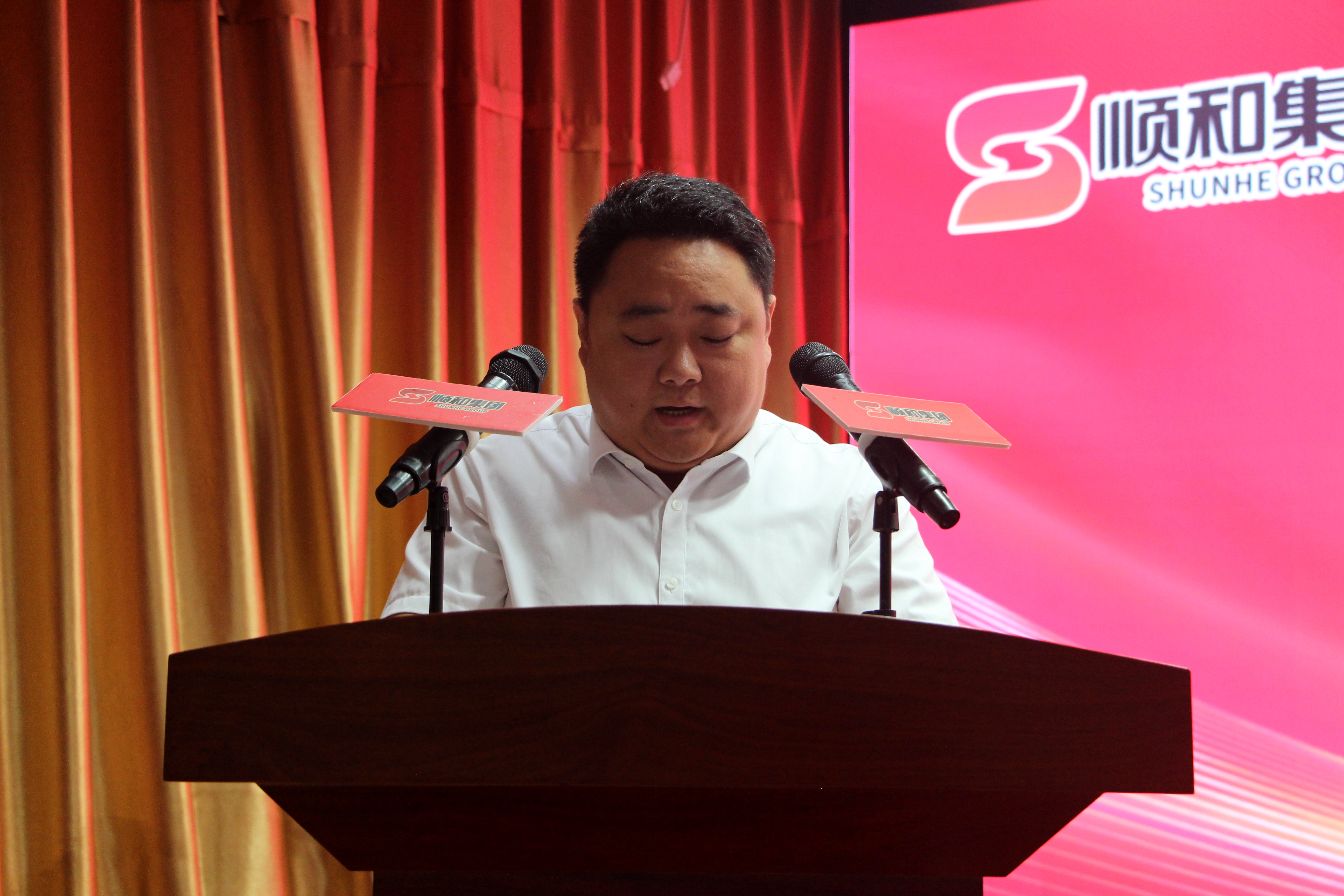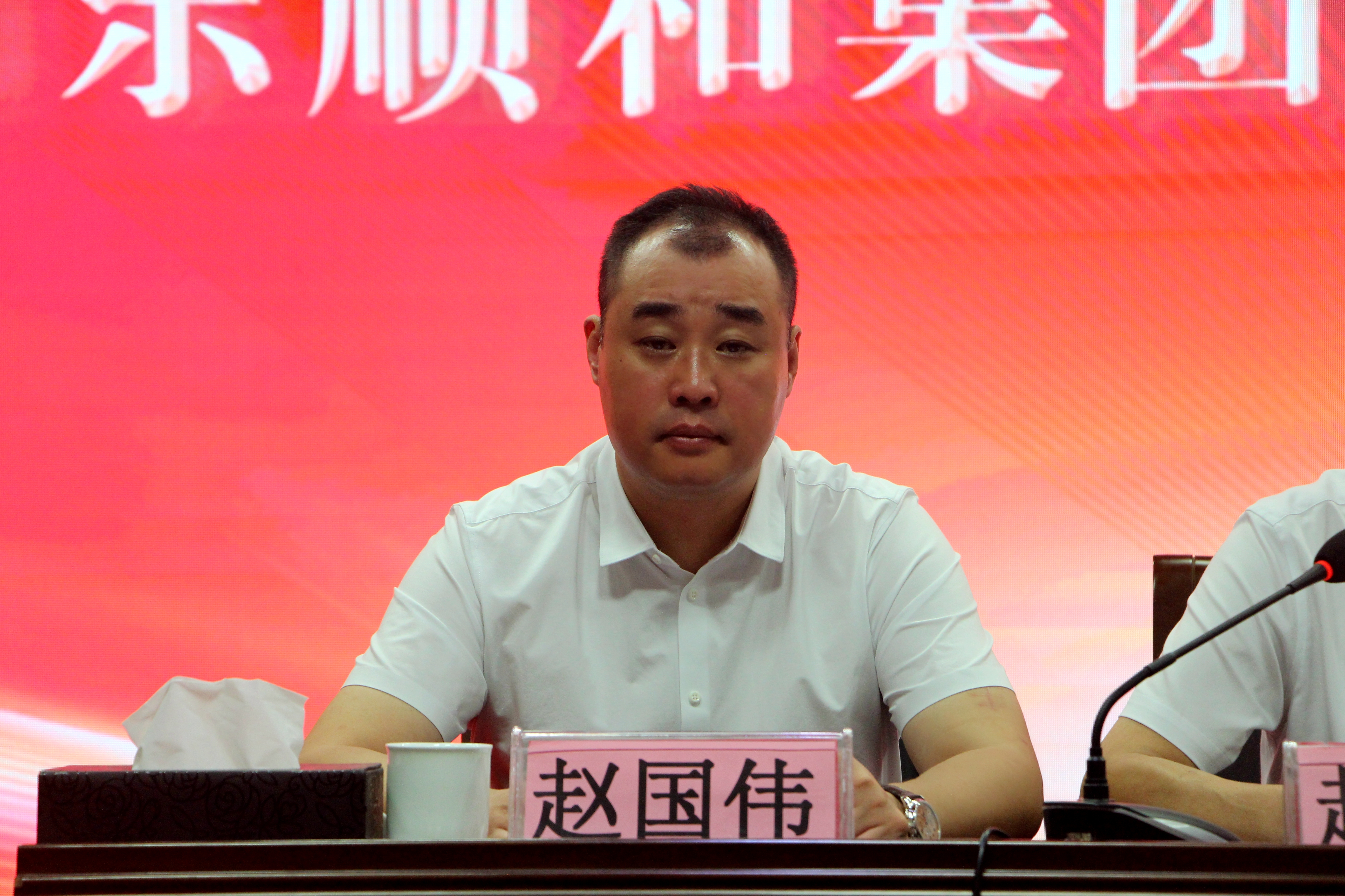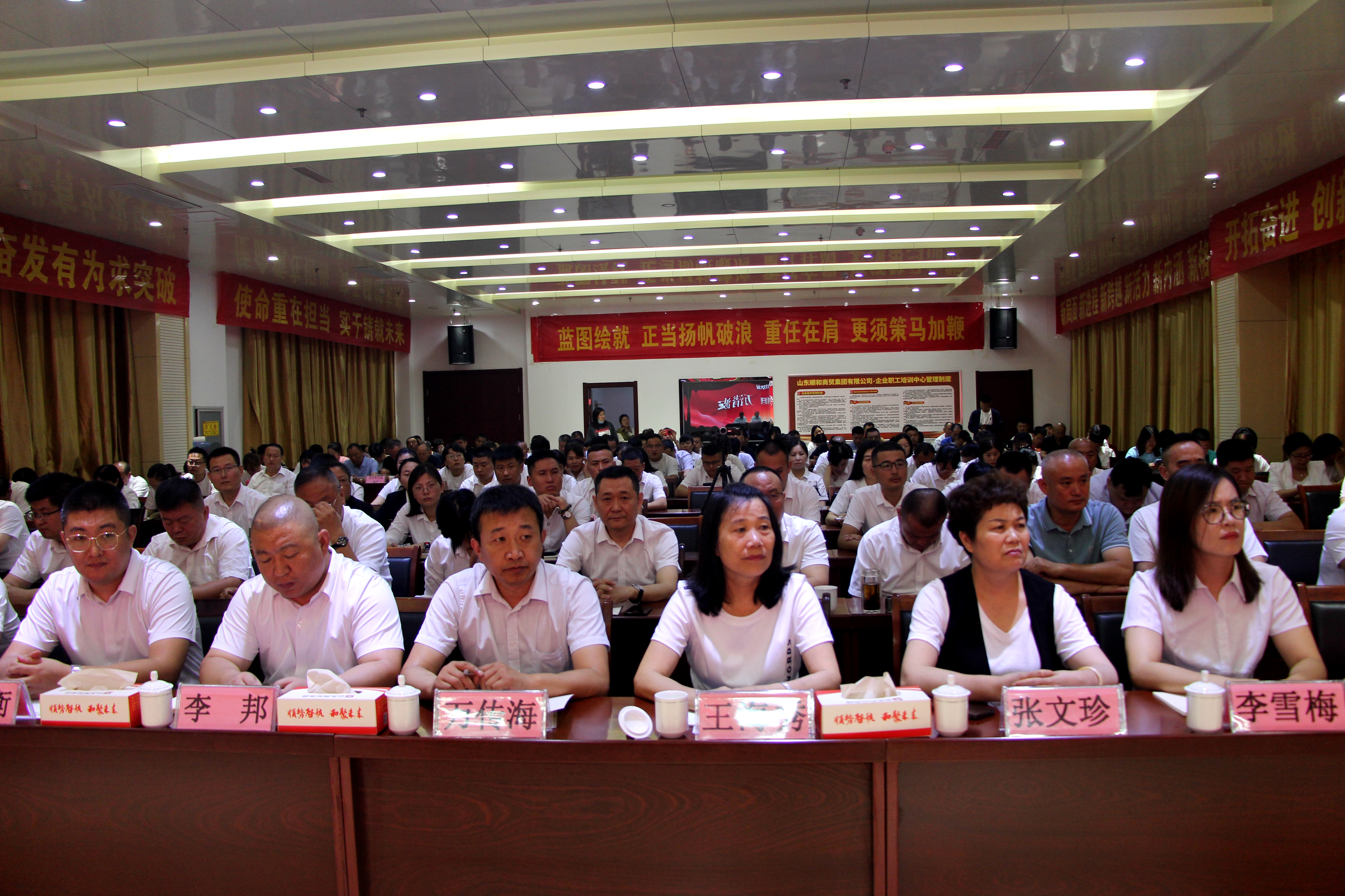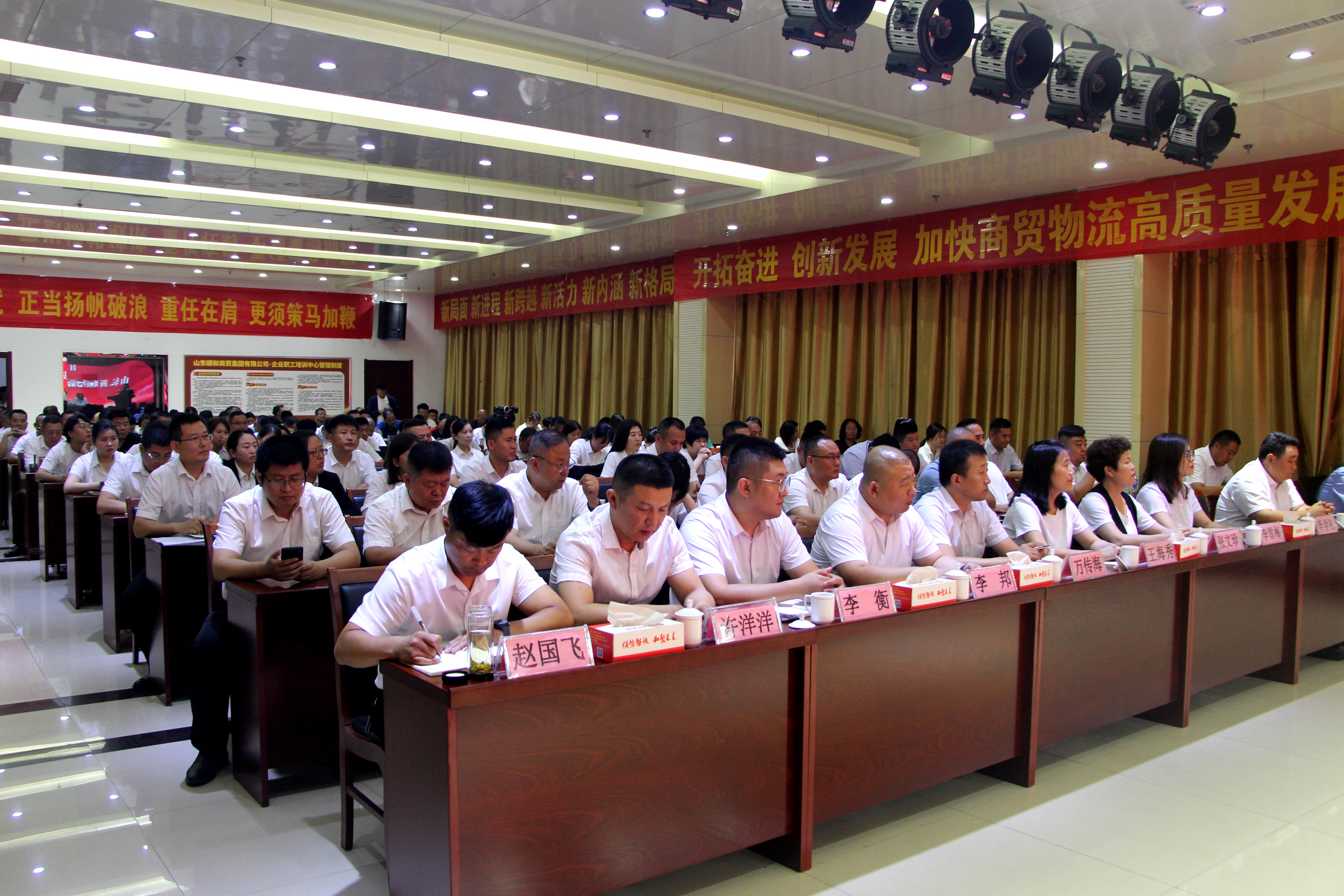 7月16日上午,山東順和集團(tuán)2024年上半年度工作總結(jié)暨天源物流搬遷動(dòng)員大會(huì)在集團(tuán)15樓會(huì)議中心順利召開(kāi)。蘭山商城管委會(huì)規(guī)劃建設(shè)科科長(zhǎng)王傳棟、蘭山街道人大工委主任杜海霞出席會(huì)議,集團(tuán)黨委、董事會(huì)成員、李莊社區(qū)兩委成員及全體工作人員、市場(chǎng)業(yè)戶代表、媒體代表等200余人參加會(huì)議。大會(huì)由集團(tuán)黨委副書記、董事長(zhǎng)趙國(guó)偉主持。